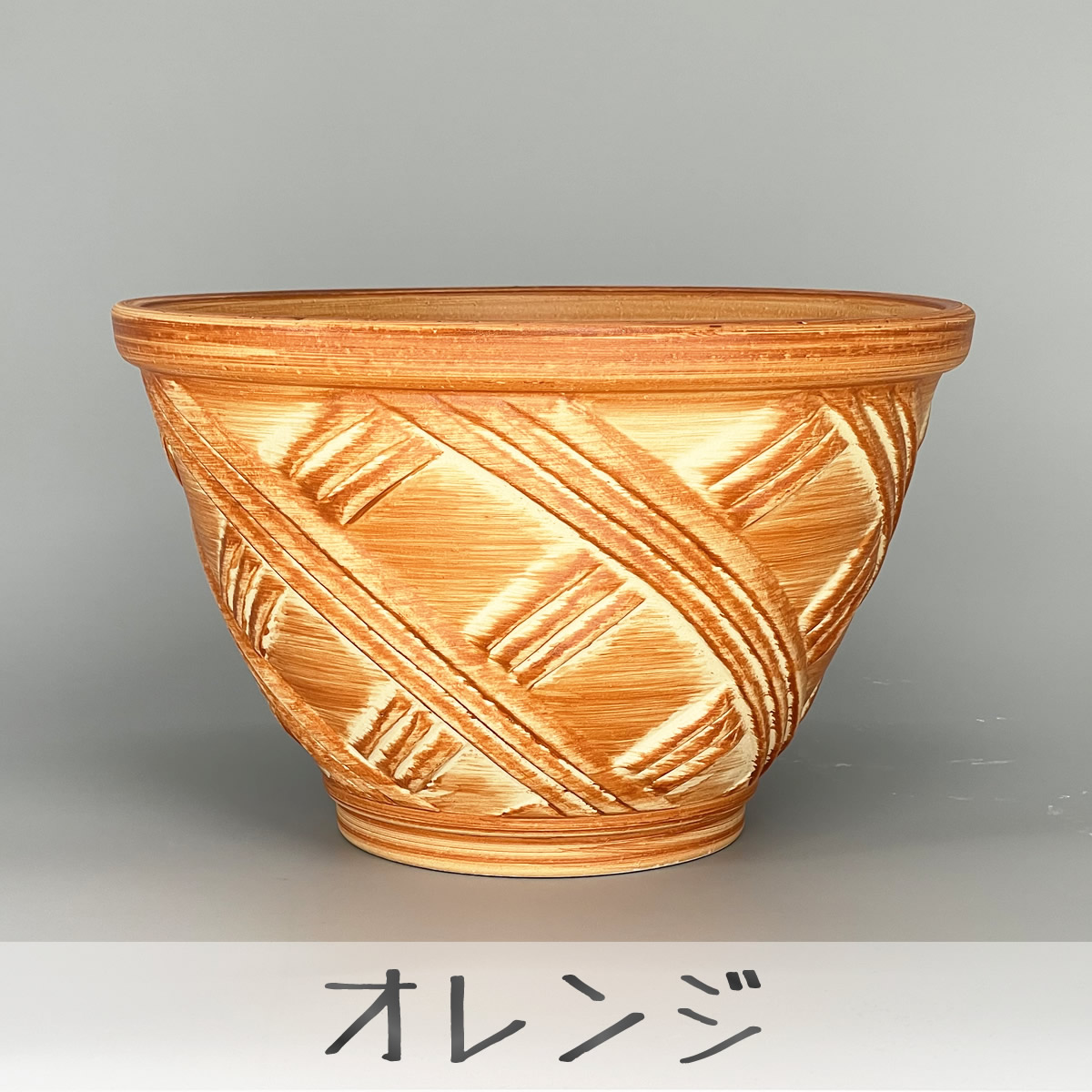 三河焼植木鉢 【フラワークロス】 オレンジ