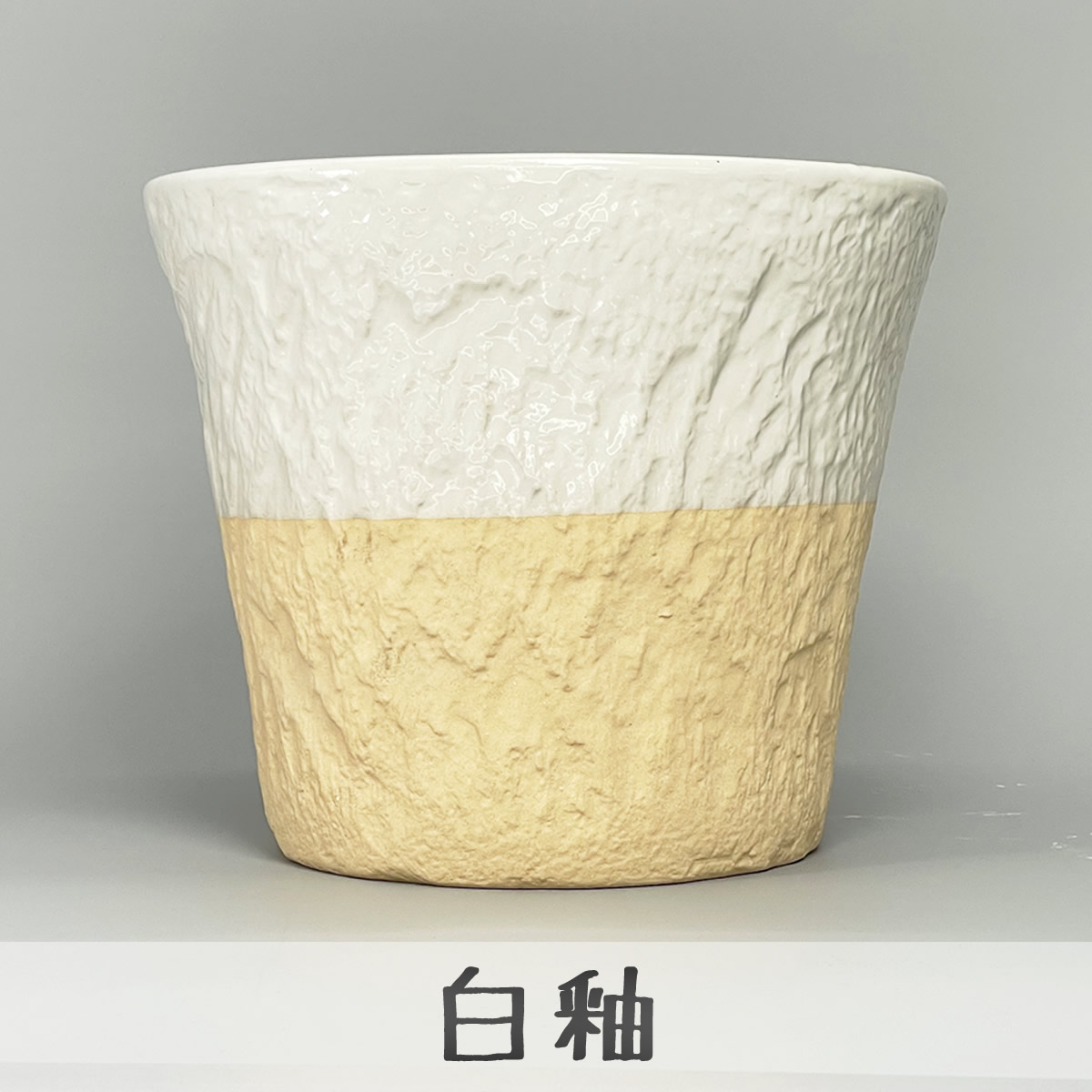 三河焼植木鉢 【ロックガーデン】 白釉